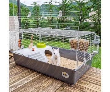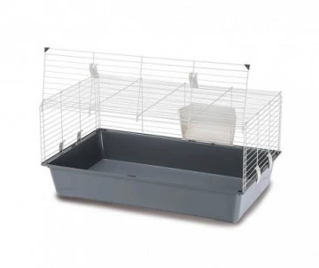 Idéal pour les lapins et cochons d’inde, la cage Rabbit 100 possède un bac en plastique coloré sur lequel repose une grille en métal. Cette grille traitée avec du vernis résistant à la corrosion s’ouvre complètement sur la partie frontale pour un accès facile facilitant les opération de nettoyage. Pour un nettoyage complet, vous pourrez détacher le bac simplement en détanchant les crochets qui se trouvent sur le côté fournis pour un maximum de sécurité.