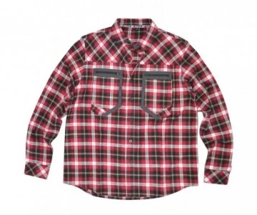 CHEMISE CARACAS MANCHES LONGUES ROUGE TAILLE XXLL. 100% COTON 185GR/M2 TOUCHE FLANELLE. CONTRASTES:65% POLYESTER.35% COTON 275GR/M2. CLO DE CHEMISE AVEC BOUTONS.FERMETURE CENTRALE AVEC BOUTONS. POCHES POITRINE CONTRASTEES ZIPPEES AVEC SECONDES POCHES PLAQUEES PAR DESSUS. PLIS D’AISANCE DANS LE DOS. RENFORTS COUDES CONTRASTES. POIGNETS AJUSTABLES FERMES PAR BOUTONS.