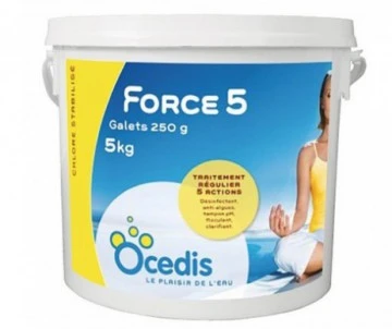 Chlore 5 multifonctions galet de 250gr :désinfectant, anti-algues, floculant, tampon pH, clarifiant.