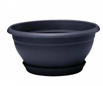 Coupe Lotus ronde avec soucoupe clipsée en plastique injecté. Utilisable comme coupe ou suspension avec le crochet. Usage extérieur. Indispensable au jardin : pratique, légère et solide. Idéale pour vos compositions fleuries au jardin et au balcon. Fabrication française.