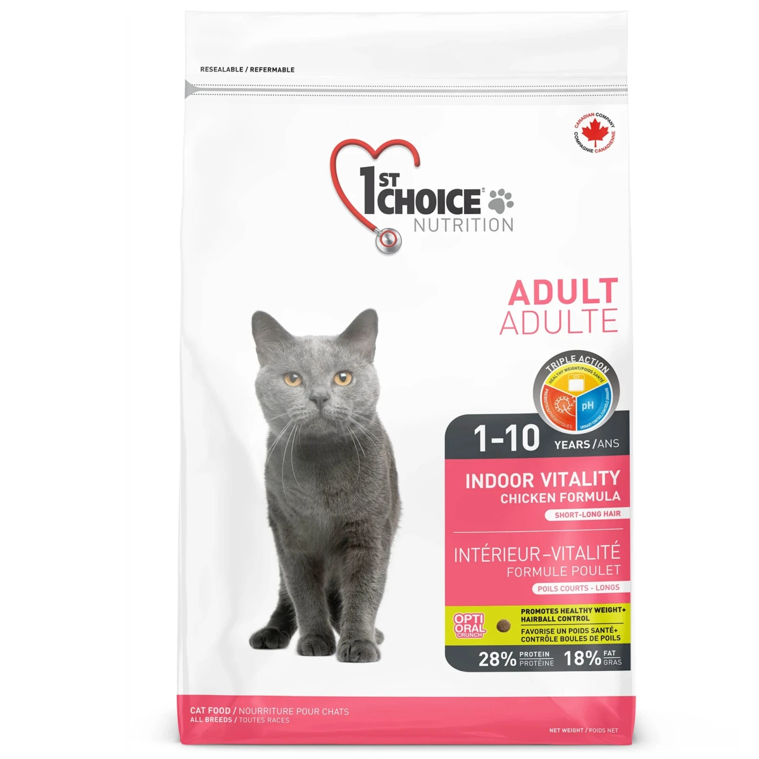 1st Choice Intérieur – Vitalité pour les chats d’intérieur est le choix idéal pour votre chat d’intérieur. Ses ingrédients ont été choisis avec soin pour les félins qui apprécient un mode de vie en milieu urbain.