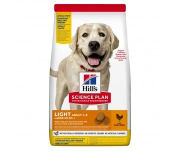 Hill’s Science Plan ALIMENT LIGHT pour CHIEN ADULTE DE GRANDE RACE au POULET (poulet 8%, total volaille 13%) est un aliment complet pour les chiens de grande ou très grande taille, de 1 à 5 ans, qui ont tendance à prendre du poids.