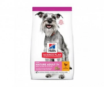 Hill’s™ Science Plan™ ALIMENT POUR CHIEN ADULTE MATURE SMALL & MINI LIGHT au POULET (poulet 9 % ; total volaille 15 %) est un aliment complet pour les petits chiens de 7 ans et plus ayant tendance à l’embonpoint.