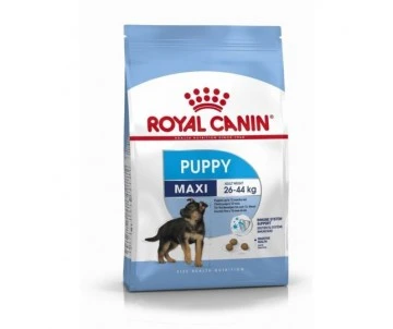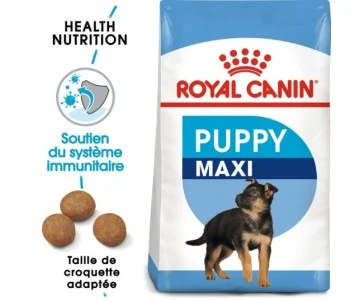 ROYAL CANIN® Maxi Puppy est spécialement conçu pour répondre aux besoins nutritionnels de votre grand chiot. Cet aliment convient aux grands chiots âgés de 2 à 15 mois dont le poids à l’âge adulte se situera entre 26 et 44 kg. La formule ROYAL CANIN® Maxi Puppy contient un complexe breveté d’antioxydants – dont la très bénéfique vitamine E – pour renforcer les défenses naturelles de votre chiot à mesure que son système immunitaire encore immature se développe. Le mélange de nutriments aux protéines de haute qualité (comme la L.I.P, connue pour sa très haute digestibilité) et de prébiotiques comme les FOS permettent de renforcer la santé digestive de votre chiot. Dans la mesure où la période de croissance des chiots de grande taille est assez longue, leur alimentation ne doit négliger aucun paramètre de cette étape. Heureusement, ROYAL CANIN® Maxi Puppy contient un taux d’énergie modéré pour répondre aux besoins énergétiques de votre chiot.