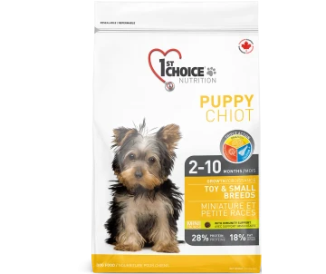 La formule 1st Choice Miniature et Petite Races pour chiot est la meilleure pour combler les besoins essentiels post-sevrage. À ce stade, le système immunitaire doit être supporté par une nourriture spécialement conçue.