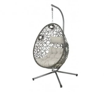 FAUTEUIL OEUF SUSPENDU GRIS. Dimension du support 195 cm. Type Balancelle.