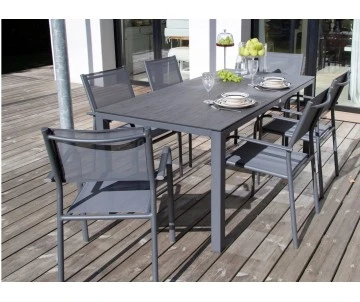 Fauteuil Duca empilable et léger, châssis aluminium époxy toile TPEP (polyester).