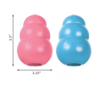 Le jouet KONG Puppy pour chiots a été élaboré spécialement pour les dents de lait des chiots. La formule unique de son caoutchouc 100 % naturel est la plus souple de la gamme de jouets en caoutchouc KONG. Conçu pour s’adapter aux 28 dents de lait des chiots, il aide à gérer leur mastication de façon appropriée tout en offrant une stimulation et en satisfaisant leur instinct naturel. Le rebond déconcertant est idéal pour les chiots qui veulent simplement s’amuser. Un KONG Puppy farci de friandises occupe les tout petits constamment en action tout en vous permettant de pourvoir à vos nécessités. Vous cherchez un moyen de dresser votre chien à rester dans sa niche ou son panier, ou bien vous voulez que les séances de jeu soient plus intéressantes ? Faites en sorte de farcir le jouet de croquettes pour chiots et d’un soupçon de beurre de cacahuète. Augmenter le défit en ajoutant des KONG Puppy Snacks et de la pâte KONG Puppy Easy Treat par dessus.