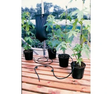 Le réservoir d’eau à une capacité de 10.5 litres vous assure que vos plantes seront arrosées pour une période de 24 heures pendant que vous vaquez à vos occupations. En plus du réservoir, la trousse inclus 5 mètres de tube d’irrigation et 6 buses ajustables.