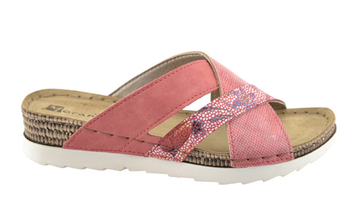 Cette mule Femme est composée de 3 lanières fantaisie croisées sur le dessus du pied.