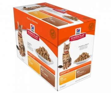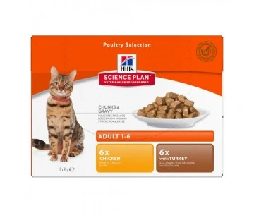 Faites plaisir à votre chat avec une sélection des bouchées en sauce Hill’s Science Plan à la volaille (au poulet et à la dinde).