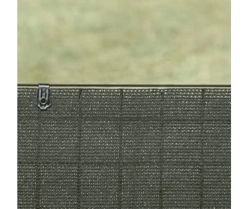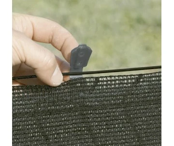 CLIP DE FIXATION UNIVERSEL POUR BRISE-VUE TISSE. NOUVEAU FORMAT COMPACT, RESISTANT EFFICACE ET DISCRET. PERMET LA FIXATION HAUTE ET BASSE SUR FIL DE TENSION, AINSI QU’AU MILIEU DU BRISE-VUE (2 CLIPS EN VIS-A-VIS). DISCRET ET EFFICACE. FORMAT OUVERT : 68 X 20 CM. SANS PERFORATION DU BRISE-VUE. RAINURE PERMETTANT LE PASSAGE DU FIL DE TENSION. ASPECT TRANSLUCIDE LE RENDANT TRES DISCRET. DISPONIBLE EN 4 COLORIS, A ASSORTIR AVEC LES COLORIS DE BRISE-VUE.