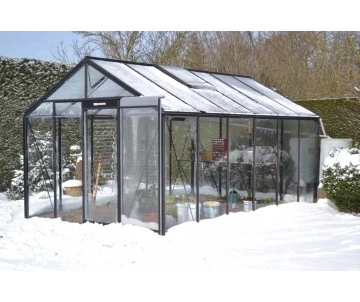 Ce type de serres est le plus fréquent. Grâce aux parois droites, ces serres ne prennent que peu de place. La totalité de la surface de la serre est utilisée*.
