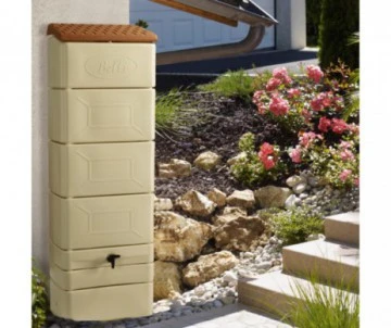 Ce récupérateur mural d’eau de pluie a une capacité de 300 litres. C’est un moyen économique pour arroser votre jardin et vos fleurs. Dimensions : L. 34 x P. 60 x H. 180 cm.
