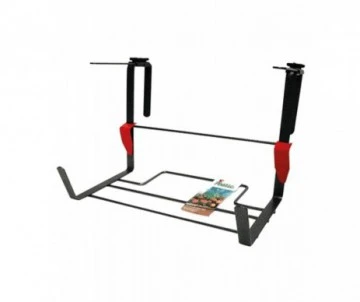 Support réglable (37x22x21cm)avec barre de sécurité. S’adapte à un rebord de 5 cm à 15 cm de large. poids maximum 15kg. En acier effet martelé.