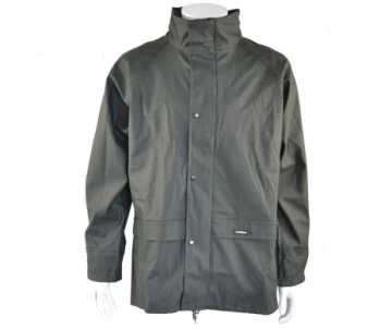 VESTE DE PLUIE METEO OLIVE TAILLE M 50% POLYURETHANE 50% PVC 400G/M2. DOS VANTILE. POIGNETS ELASTIQUES.COUTURES ETANCHES.CAPUCHE AVEC CORDON DE SERRAGE.